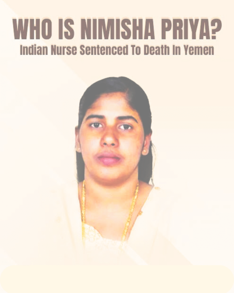 Kerala nurse Nimisha Priya जो काम करने यमन गई थीं, को 2017 में एक यमनी नागरिक की हत्या के आरोप में दोषी ठहराया गया था और फांसी की सजा सुनाई गई थी। यह मामला समय के साथ मानवाधिकार संगठनों और भारतीय प्रवासी समुदाय का ध्यान आकर्षित करता रहा है, जो सरकार से कूटनीतिक हस्तक्षेप की मांग कर रहे हैं।